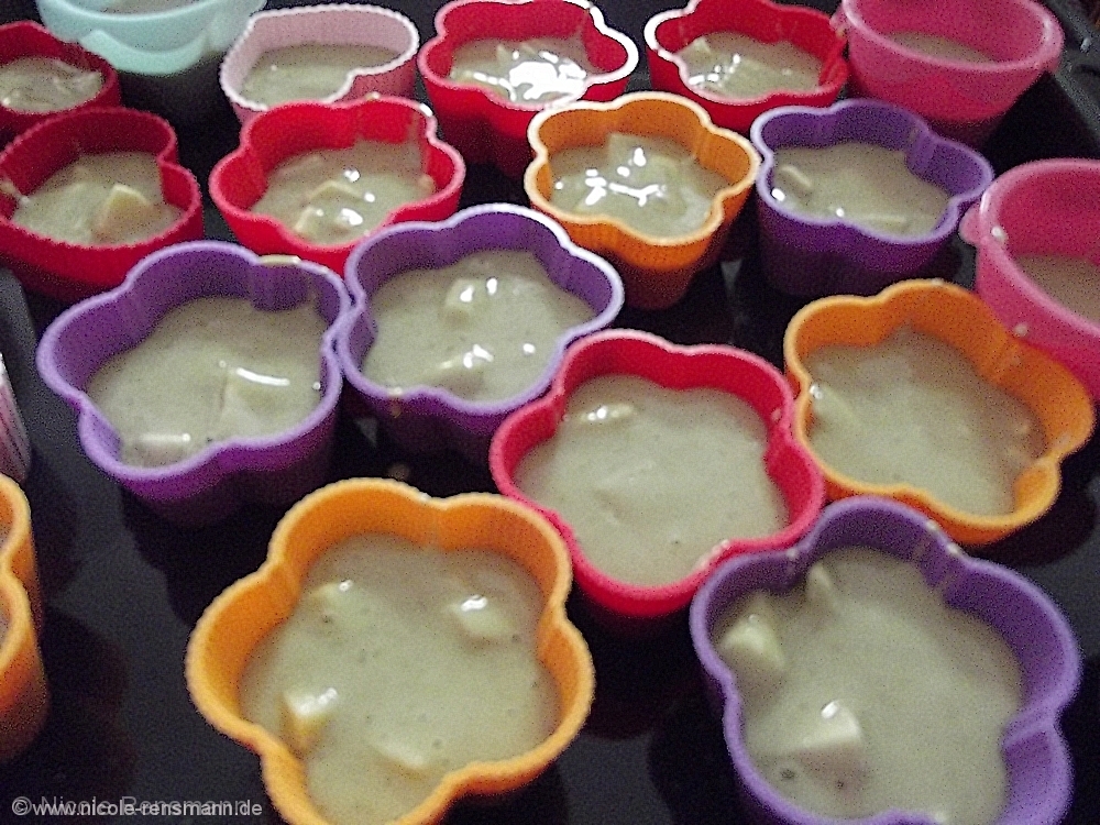 Teig in Förmchen füllen und fü ca. 25 Minuten in den Ofen.