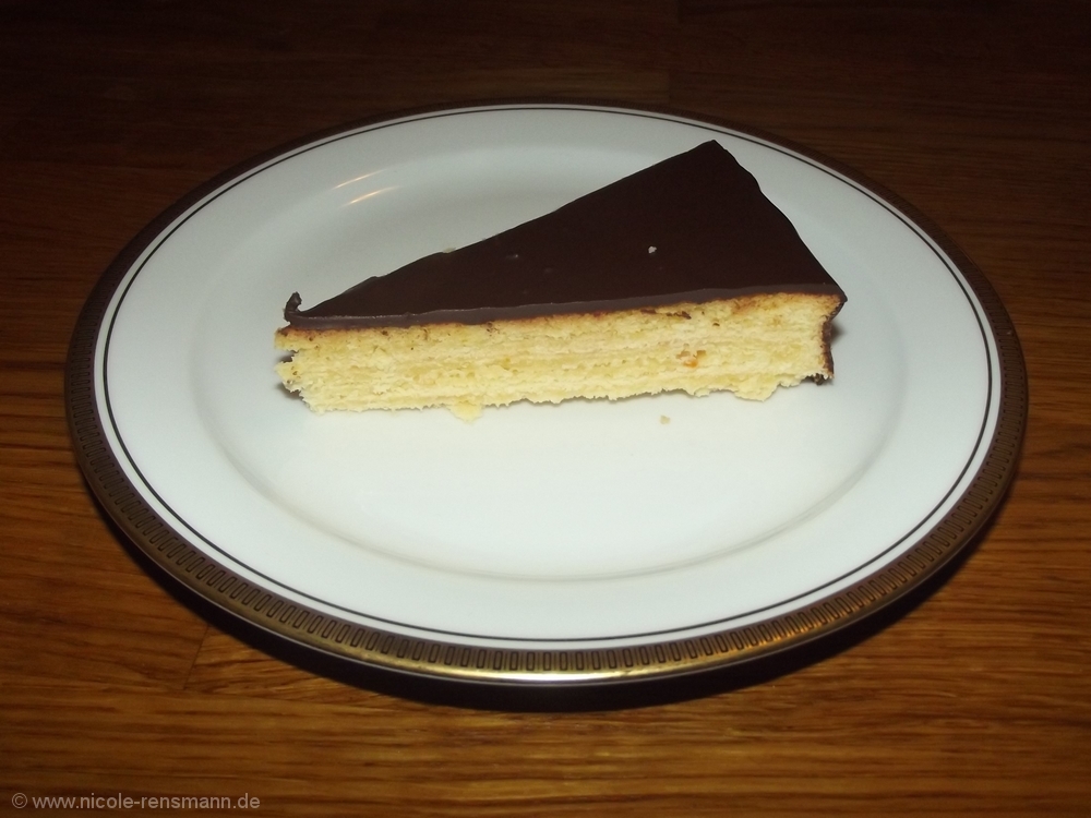 Ein Stück Baumkuchen – sehr lecker. Beim nächsten Mal würde ich noch mehr Schichten auftragen