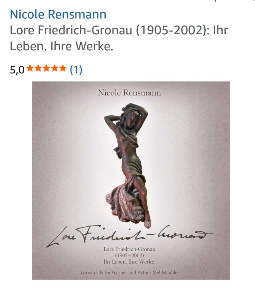 Darin heißt es u.a.: „Die Autorin leistet mit der bislang einzigen Monographie zu Friedrich-Gronau Pioniersarbeit. Was Rensmann an kunsthistorisch-akademischem Hintergrund fehlen mag, gleicht sie durch intensive Feldforschung in Text und Person sowie ein vielschichtiges digitales Projekt aus. Nach diesem Meilenstein wären noch mehr kunsthistorische Stimmen wünschenswert, die das biographische Werk wissenschaftlich weiter ergänzen und den Diskurs um fallbezogene Analysen erweitern. Vor allem Sammelnde – zu denen die Autorin selbst gehört und sogar Gutachten anbietet – profitieren von diesem handlichen Buch, das einen vielschichtigen Überblick in Lores Künstlerinnentätigkeit gibt und dessen Werkverzeichnisse in Kombination mit dem Wiki die Objekte zugänglich machen. Nicole Rensmann setzt der Künstlerin ein denkwürdiges Denkmal gegen die Vergessenheit.“