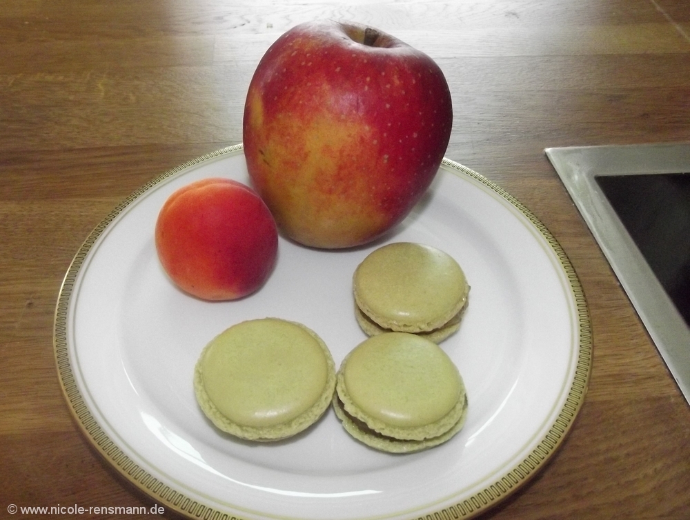 Matcha-Macarons mit Apfel-Aprikosen-Ganache